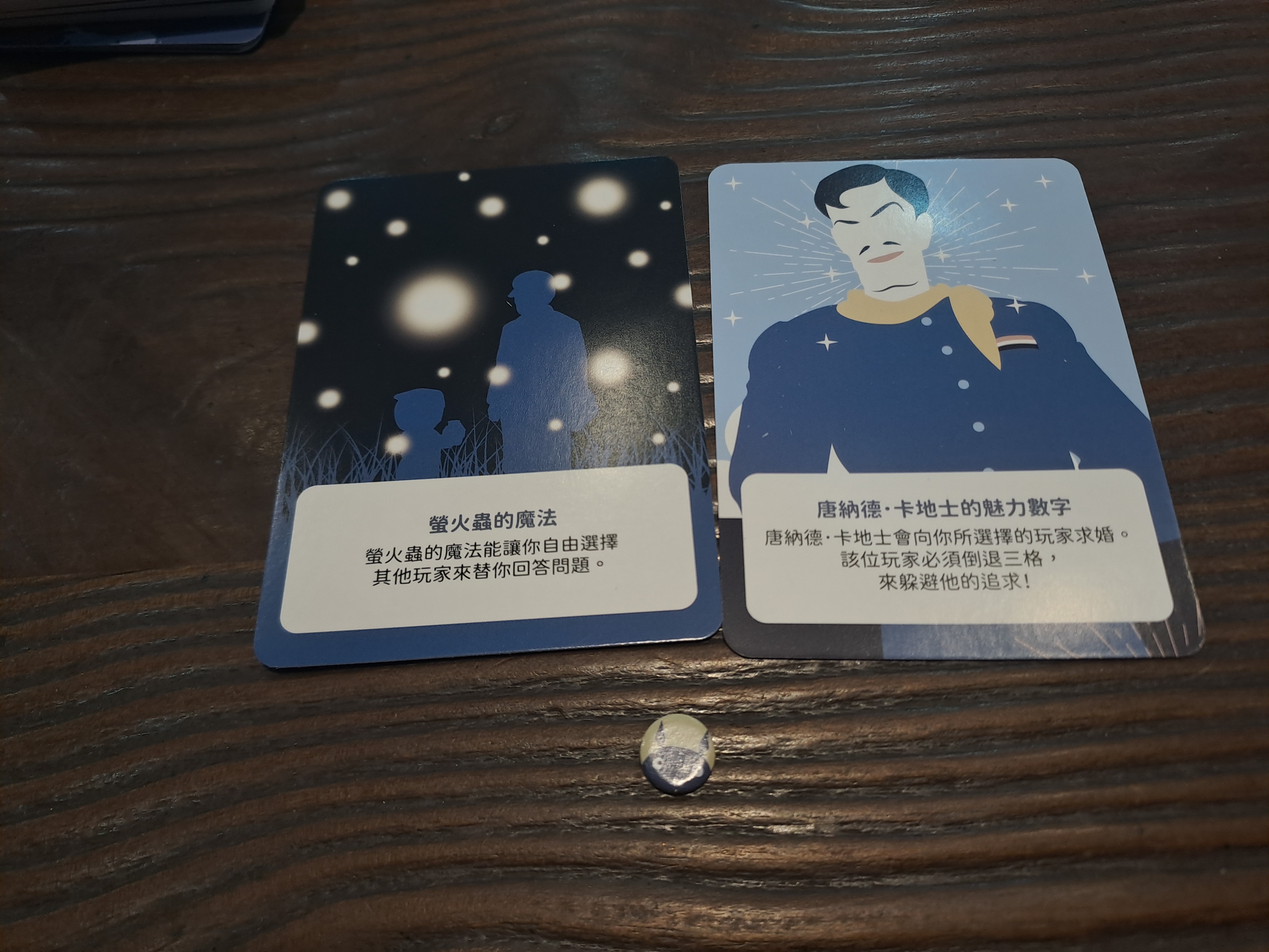 每位玩家拿取一個計分標記,各抽一張祝福跟陷阱卡