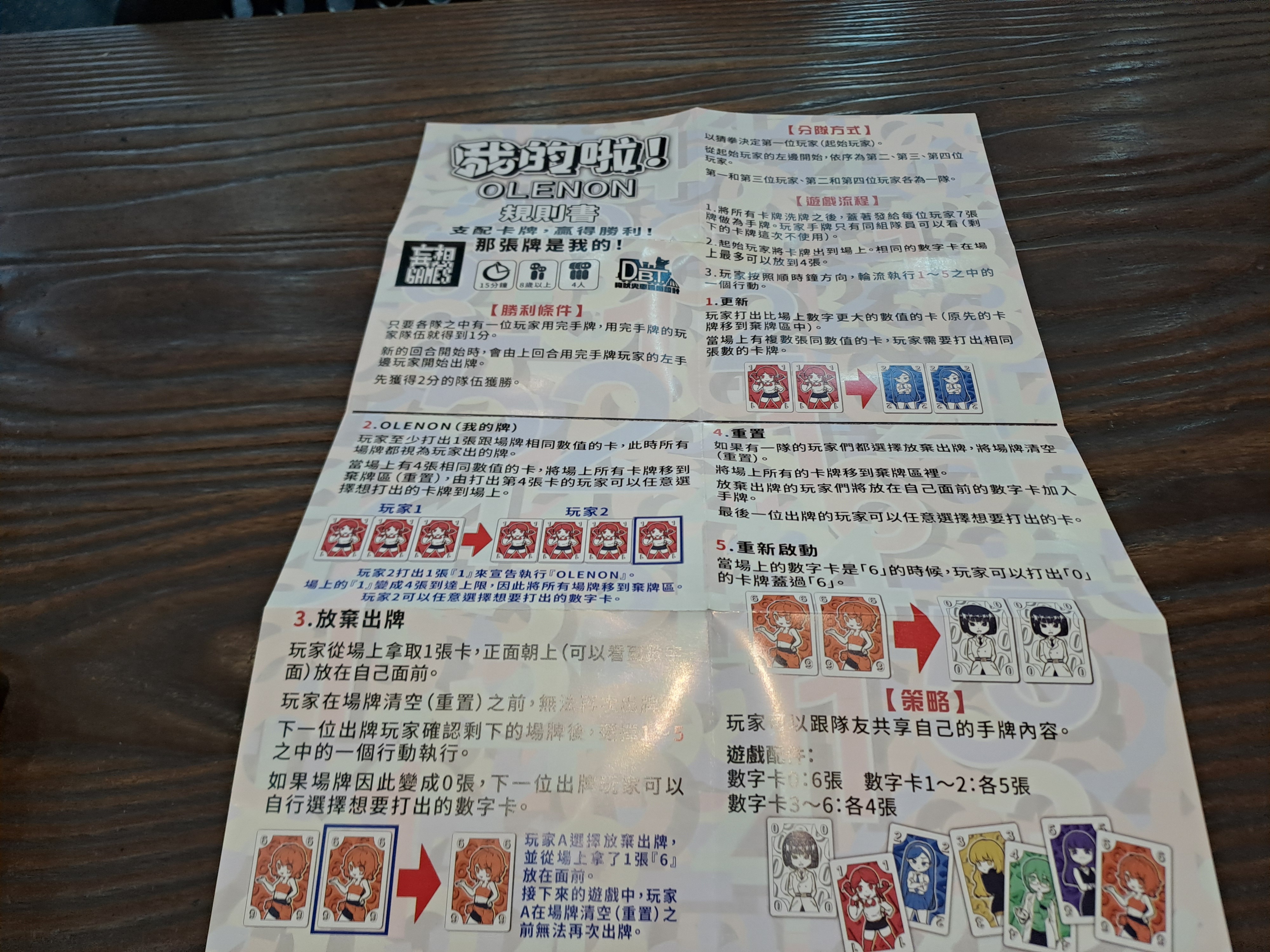 順位2與4的玩家同隊,每位玩家抽七張手牌