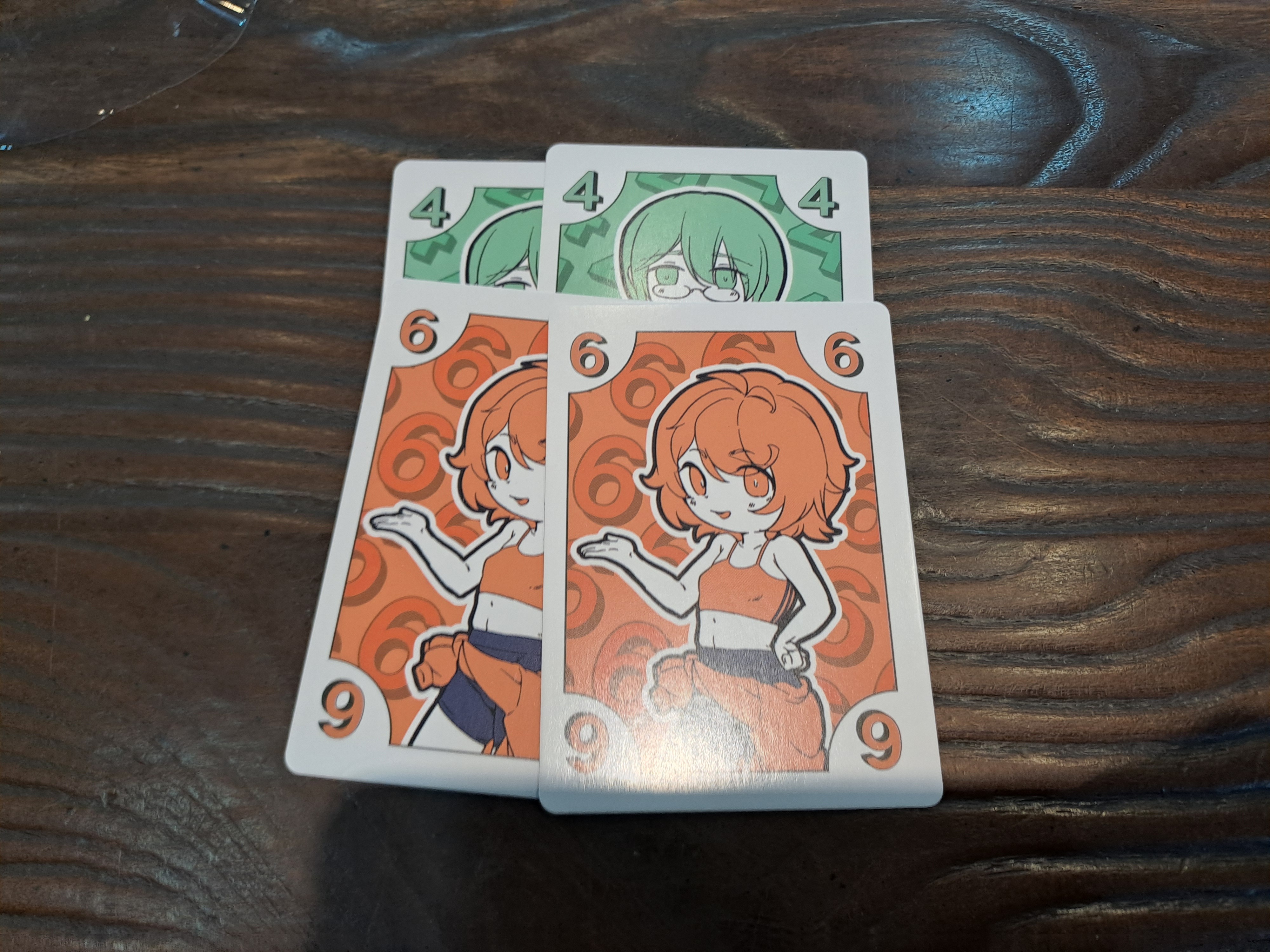 如果讓場上牌剛好四張,則立即棄掉,此玩家可以接著打出任意牌
