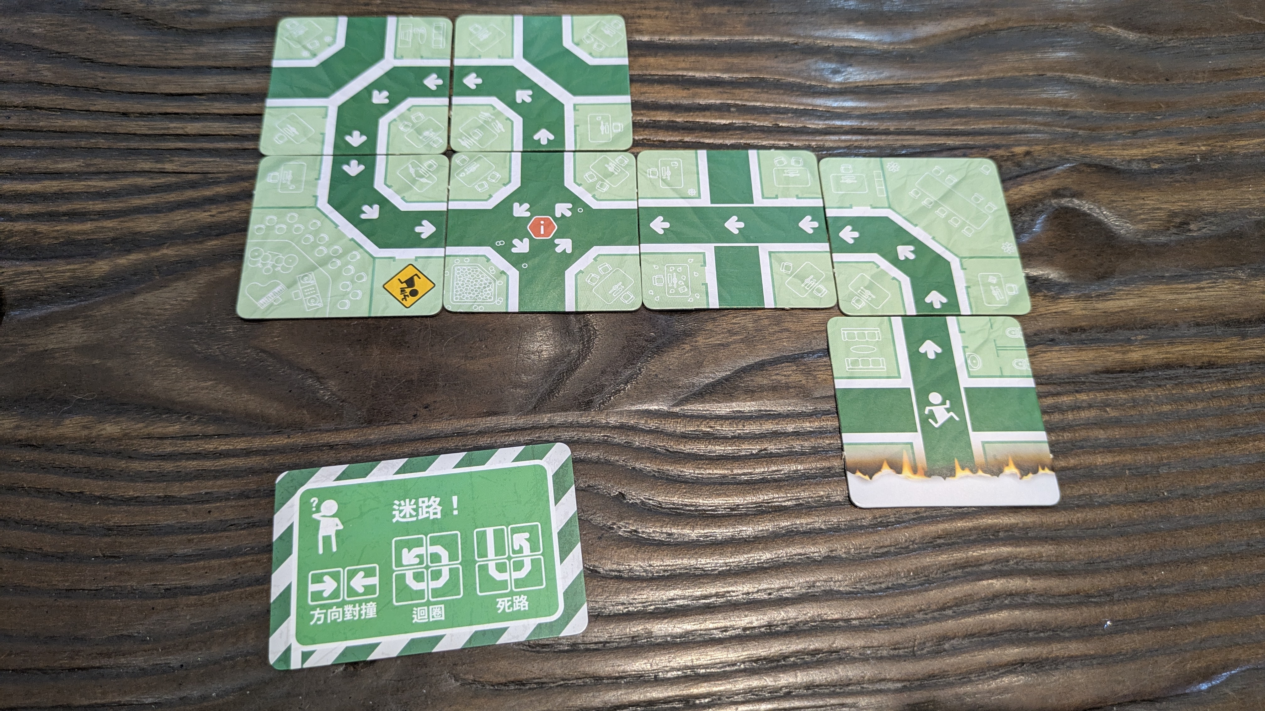 緊記逃生 EMERGENCY EXIT ONLY 對撞、迴圈、死路會導致迷路,你腦中的地圖走到哪裡了呢?隨著遊戲進行,迷路的條件會越來越多,危險卡的加入讓遊戲更加挑戰,考驗你腦內的空間概念!